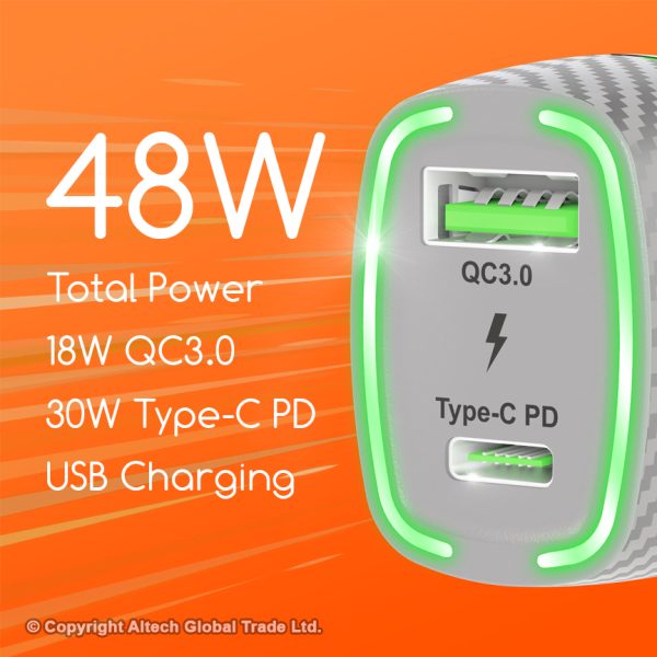 The charger is great. Charges fast. Exellent car charger. Now am able to charge two phones together quickly.