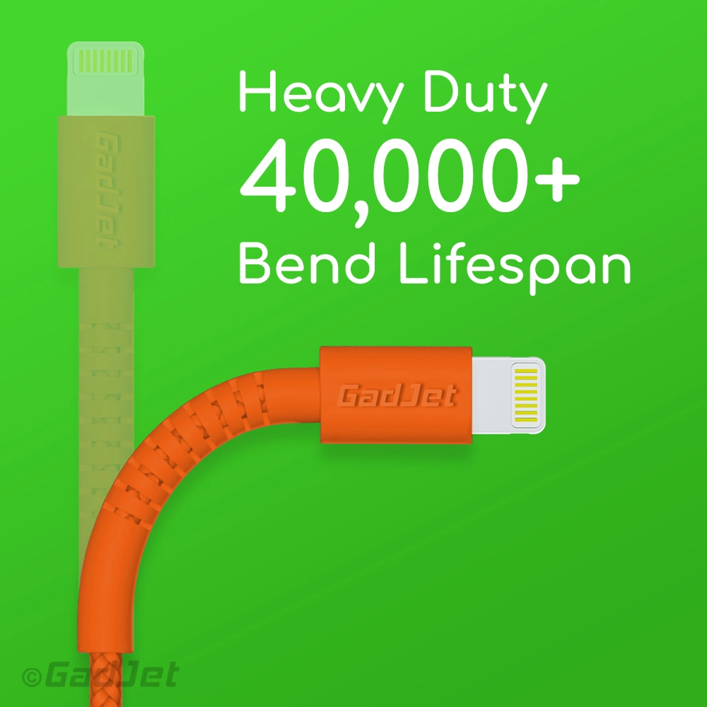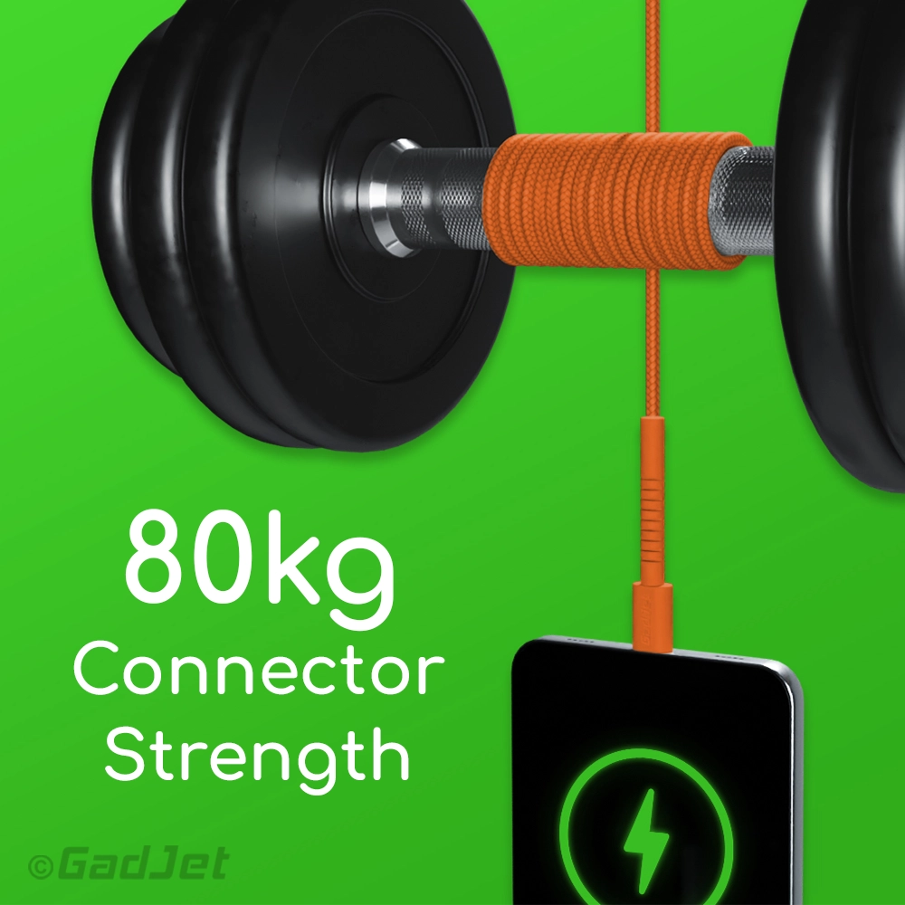 The GadJet Extra Long 3m USB-A to Lightning Cable is built with reinforced connectors tested for up to 80kg strength, helping protect against everyday pulling and strain.