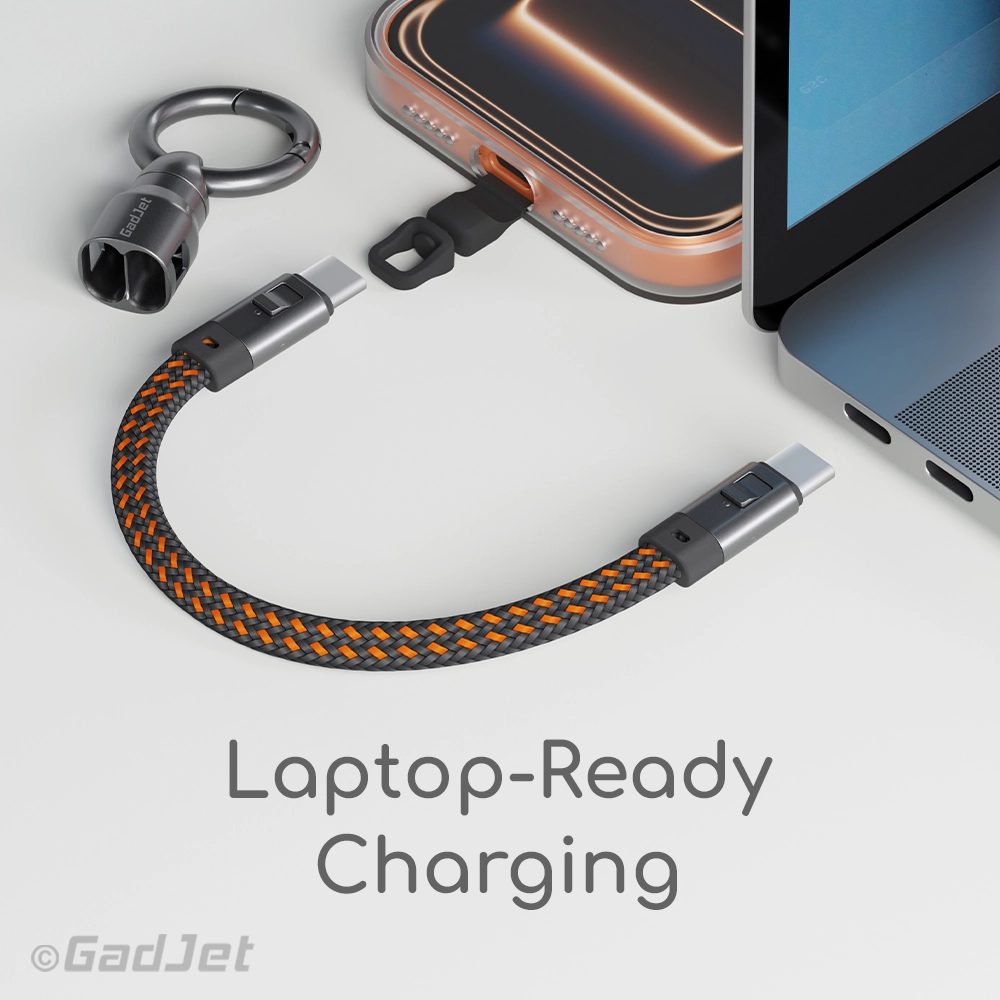 The GadJet Mini Keyring Charge & Sync Cable provides up to 60W of power, making it suitable for charging laptops as well as everyday devices. It’s compact, easy to carry, and built to handle bigger charging jobs when you need them.