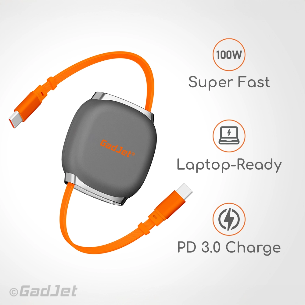Experience powerful, reliable charging with the GadJet Retractable Charge & Sync Cable, delivering up to 100W PD fast charging in a compact, tangle-free design built for everyday use.